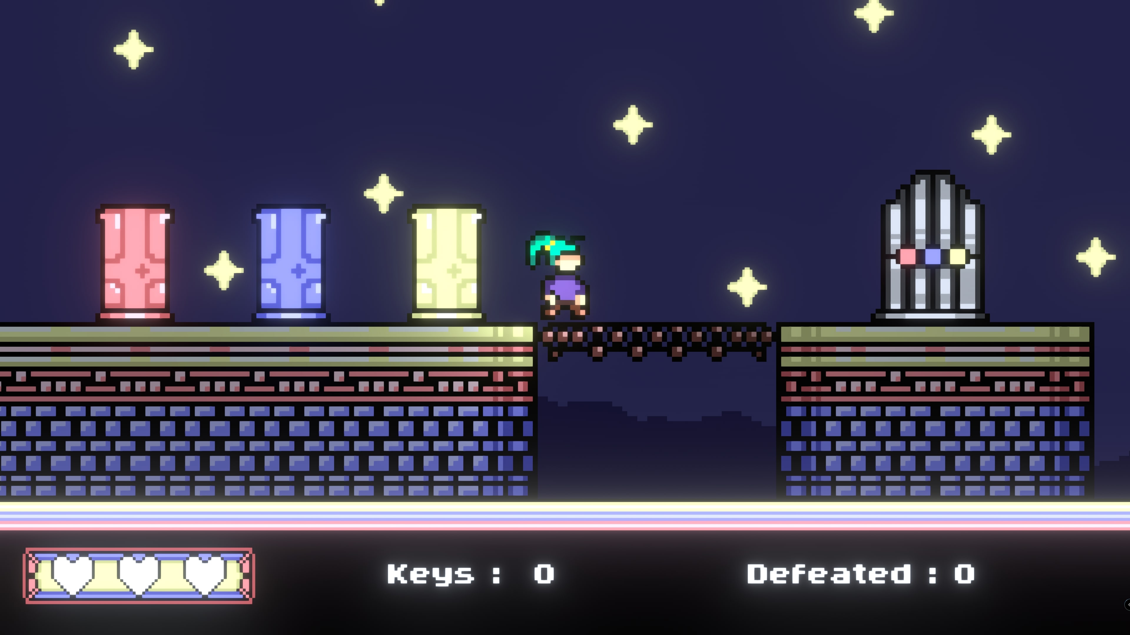 A 2D platformer set inside a starry, surreal landscape. Players control Luna as they hop around in this colorful adventure inspired by the aestetic of the GameBoy Color. Choose between three different levels in any order, then depart whenever you wish.